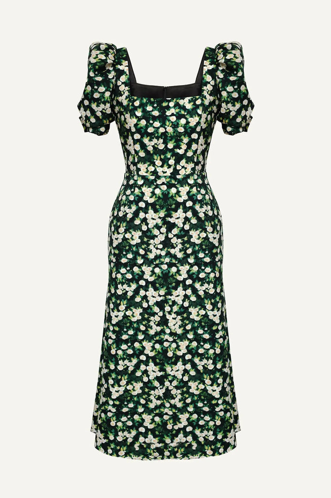 Discover a fresh style for casual wear. This silhouetted midi dress in Green with a godet skirt and lovely flower print is for those who opt for a classy look but want to add a little zest while keeping it minimalistic. Trendy square neck makes the appearance elegant and short sleeves make this garment perfect to be your lovely summer outfit. Lined.