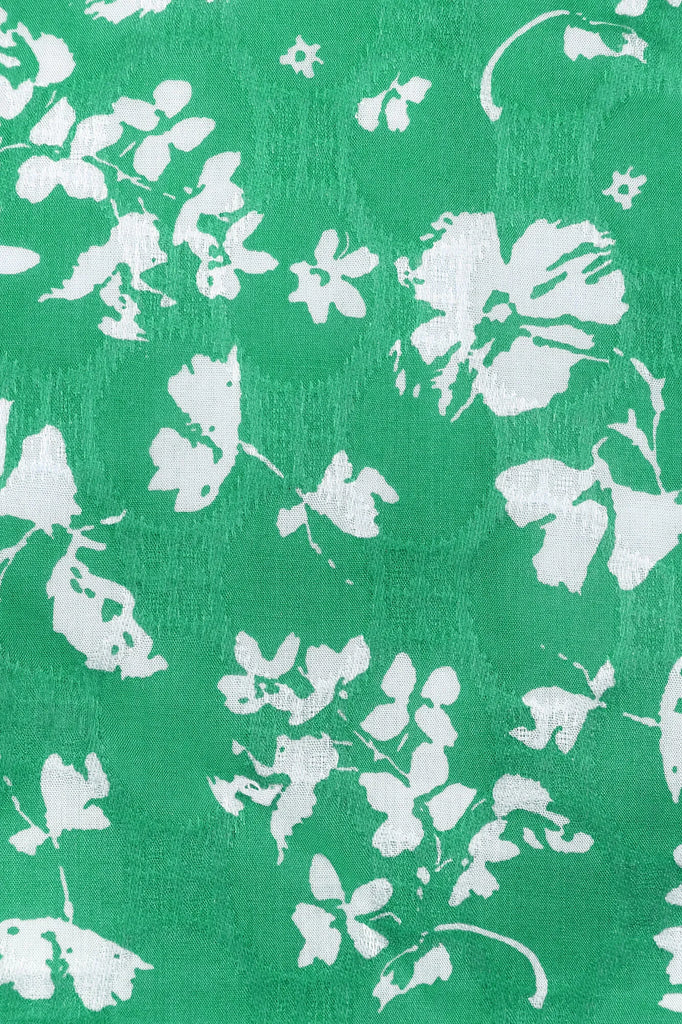 Bring the springtime freshness to your wardrobe with this floral mini dress in bright green. Voluminous lantern sleeves makes the outfit airy and feminine, while a small front slit adds a little zest. The fitted silhouette will perfectly accentuate the figure.