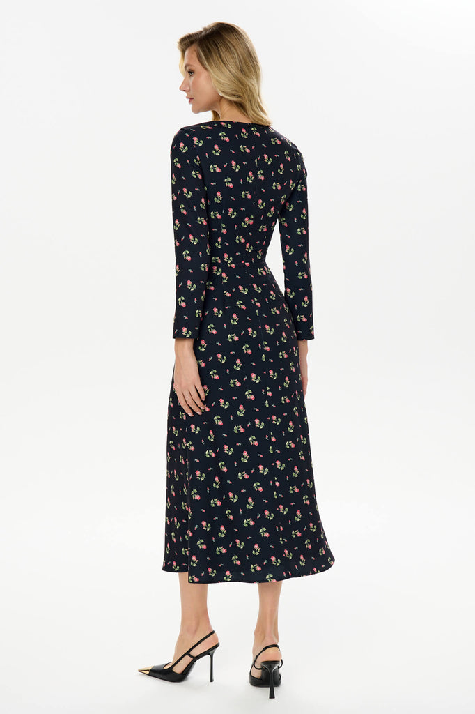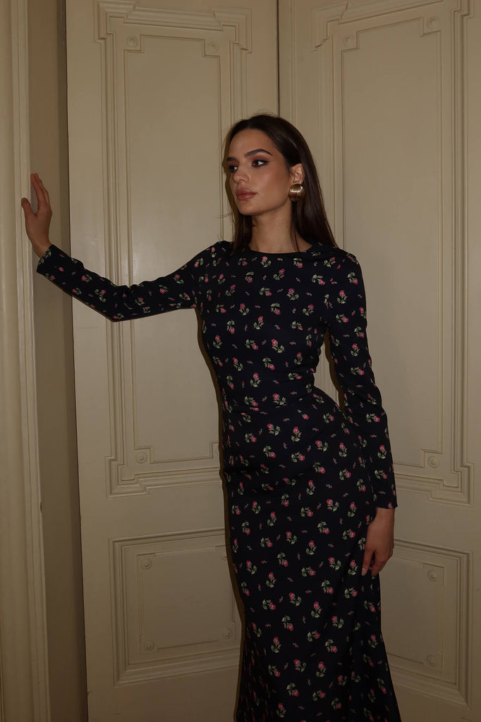 Godet Silhouette Long Sleeve Floral Midi Dress