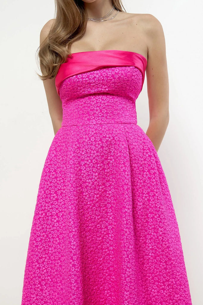Elegant, absolutely magical delicate dress. Satin turn up emphasizes the elegance of the shoulders line and creates such a romantic appearance. Evening pumps and a clutch will be a great addition.
