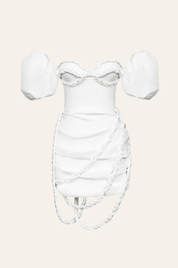The masterpiece we’re obsessed with. Be sure to take absolutely a sumptuous feeling in this ultimate dress. Corset design emphasizes the feminine shape, featuring braids decor with a luxe crystal design on it creates such an ever-chic look. Complete the look with fav heels and accessories and enjoy your special celebration night.