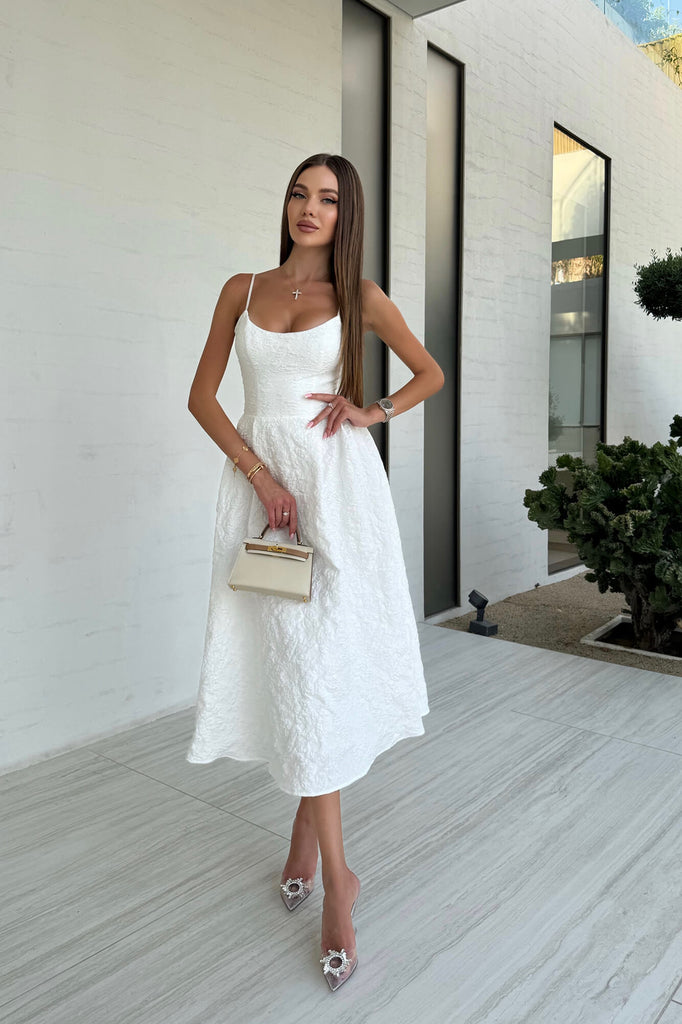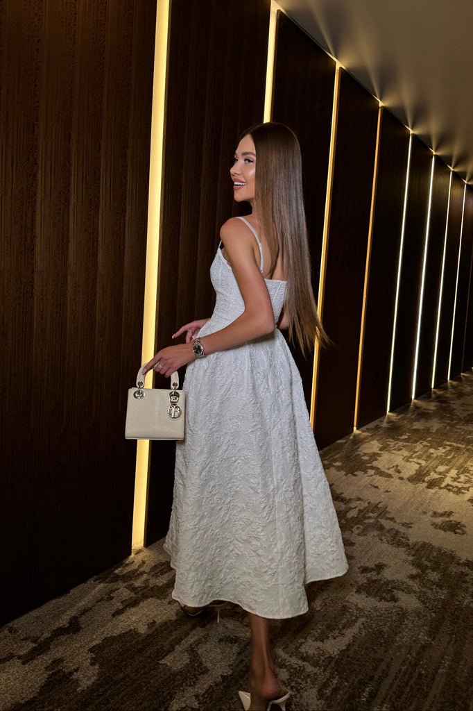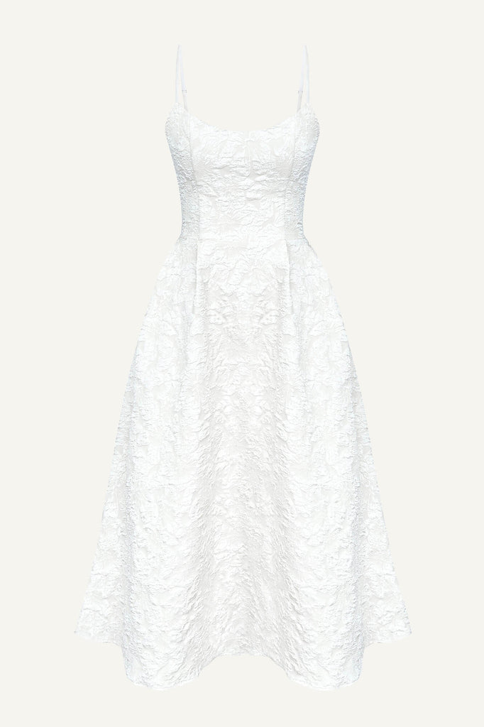 Garment is made of jacquard fabric, which boasts good durability and resistance to wear. The bustier shapes a perfect bodice and waist line. A fluffy skirt creates a light and gentle look. This dress is great for any celebration parties. Evening pumps and a clutch will be a great addition.