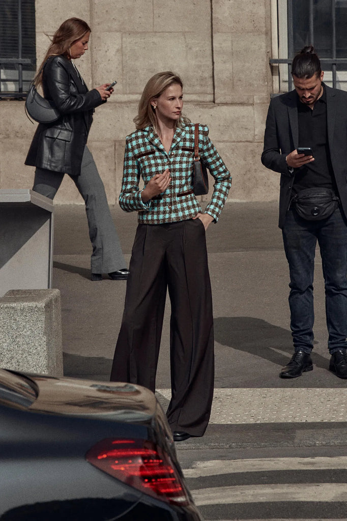 Wide trousers made of soft 100% wool is an elegant and spectacular basic wardrobe piece. The loose cut makes it easy to move, an overstated waist with a wide belt emphasizes the figure. Complete the look with bodysuits and shirts from our collection.