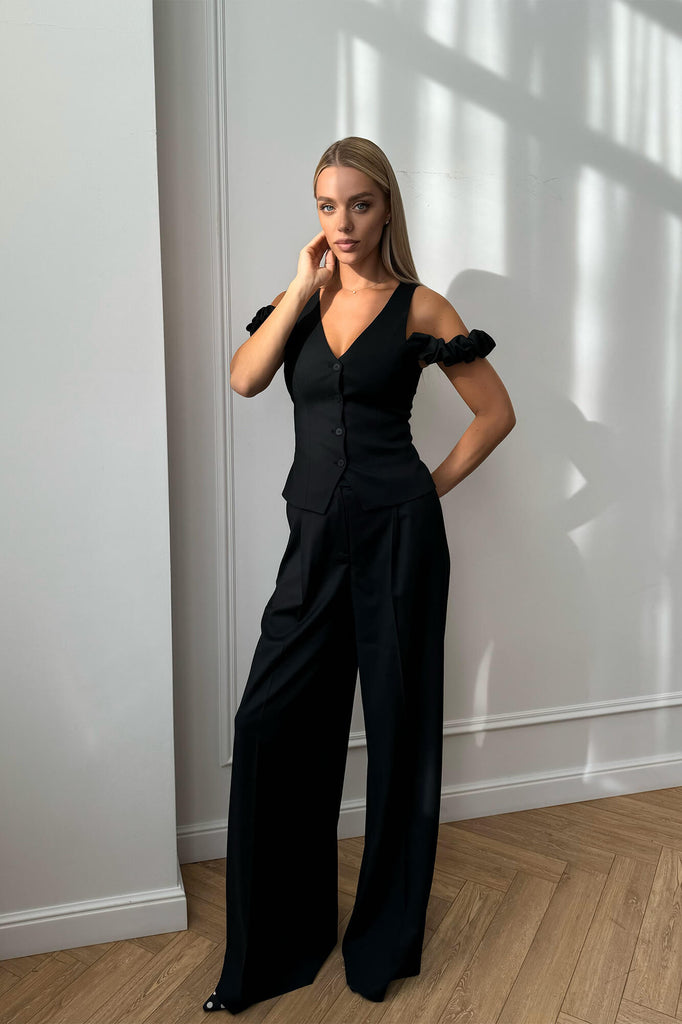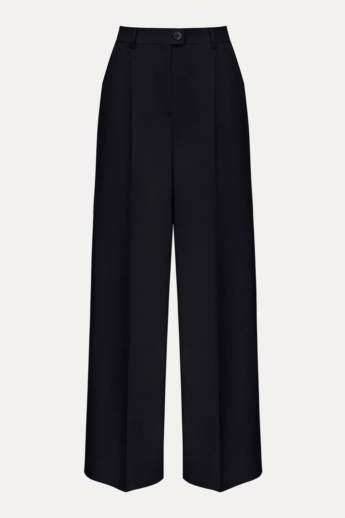 Wide trousers is an elegant and spectacular basic wardrobe piece. The loose cut makes it easy to move, an overstated waist with a wide belt emphasizes the figure. Complete the look with top and jacket from our collection.